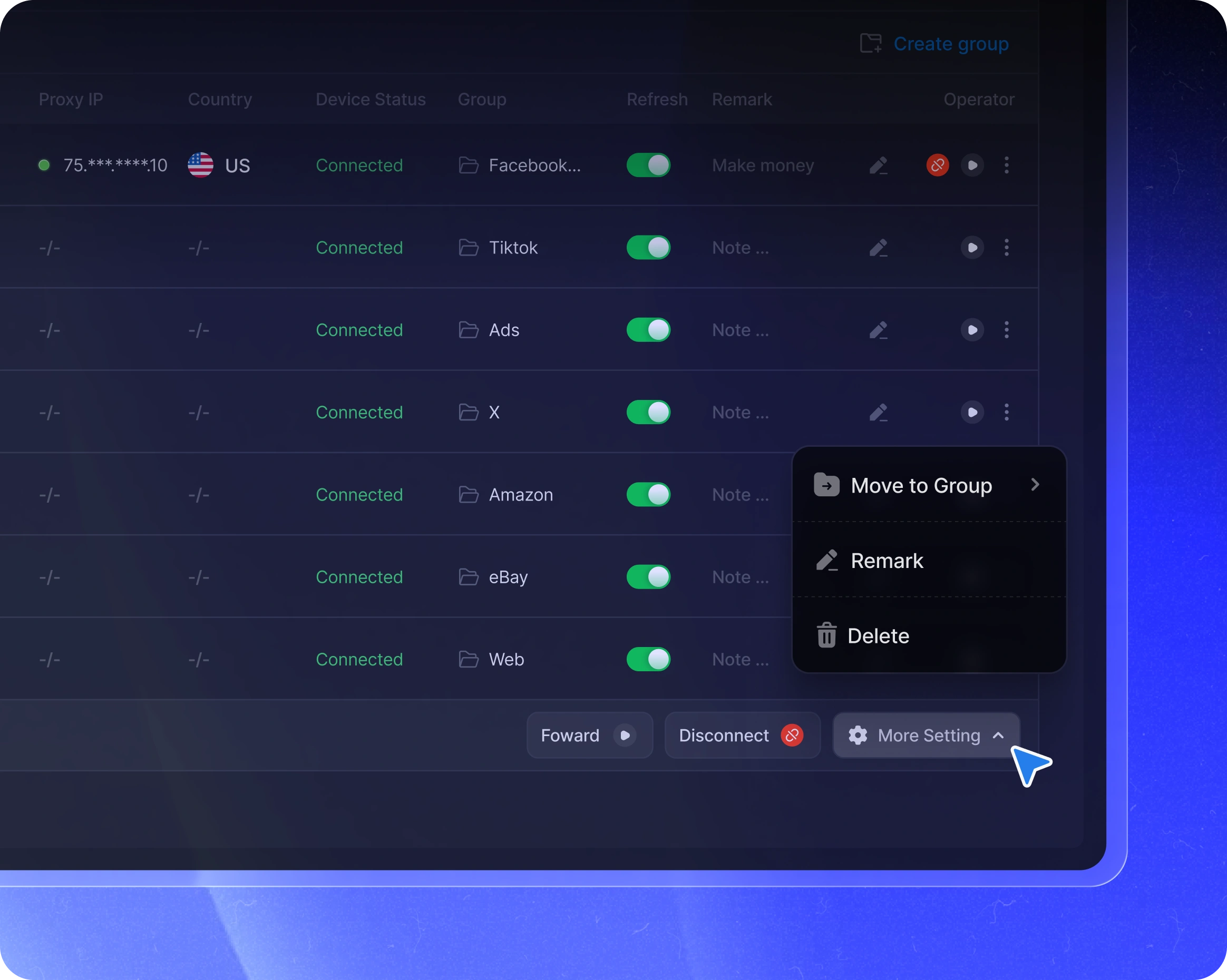 Without the right structure, managing multiple devices at scale creates risk and inefficiency. ProxyHub is built to keep your operations structured, visible, and firmly in control.